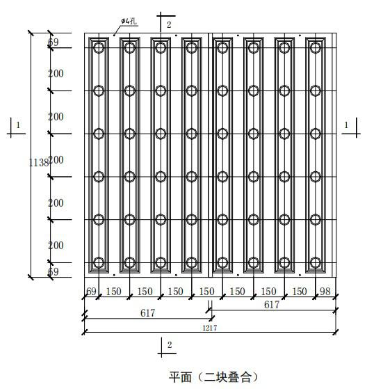 整體澆筑濾板在現場澆筑采用專用ABS塑制模板,與濾池池壁連接為一體并安裝可調式濾頭的整體澆筑鋼筋混凝土濾板。設計在滿足有關標準規定時,尚應按模板模數確定單格濾池長、寬尺寸。