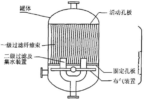 纖維束過(guò)濾器水力沖刷力強(qiáng),反洗效果非常 好,這就保證了過(guò)濾精度的長(zhǎng)期穩(wěn)定。不足之處是 更換濾料不方便,需用吊車開罐取出濾料;同時(shí)濾 盤邊緣部分纖維束的磨損較嚴(yán)重,上部電動(dòng)機(jī)啟動(dòng) 時(shí)功率要求較大。下部空間大,會(huì)導(dǎo)致過(guò)濾器整體 高度較高。